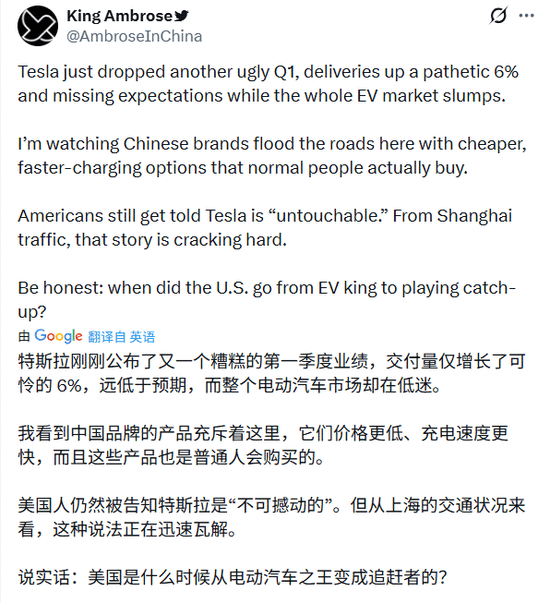 针对中国品牌的冲击,有评论开门见山地指出:中国本土车企正在订价策略和充电手艺上的迭代速度,更切近公共消费者的实正在需求。当部门市场还正在特斯拉不成打败的品牌滤镜时,一线市场的实正在消费反馈早已申明了合作款式的改变。