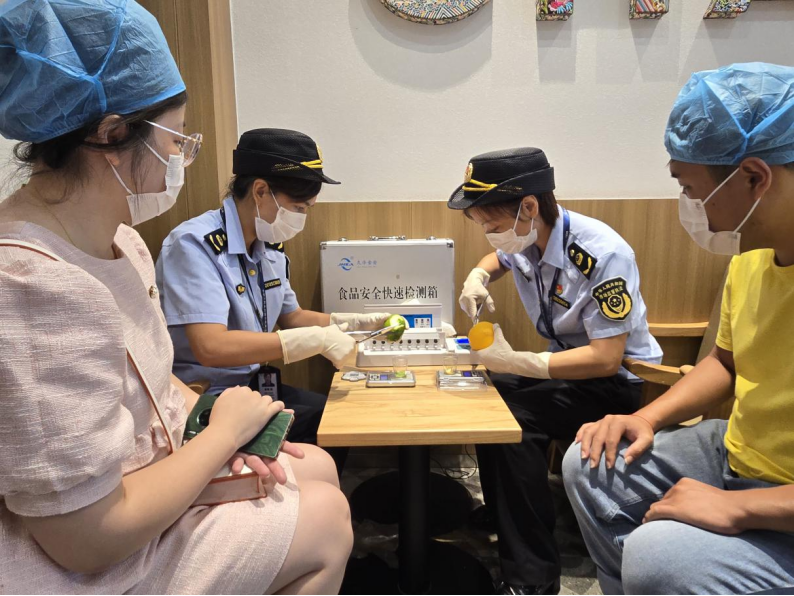 宜州区市场监管局法律人员按照前期收集调卷成果,连系夏季热销产物特点,抽取了辖区收集点击量较大、外卖平台点单数靠前的“蜜雪冰城”“幸运咖”“霸王茶姬”3家饮品店,采纳随机抽取、不打招待、曲击后厨体例,线下查看餐饮单元停业执照、食物运营许可证等运营从体天分,一一查抄食物无效期、人员健康办理、外卖封签、适量点餐提示等环境,深切操做间、库房等运营场合查抄根本卫生和“三防”设备设备利用环境等,细致领会餐饮单元能否严酷落实从体义务,线上发卖食物能否取实体发卖食物平安同质。同时,监管人员现场对柠檬、橙子等2批次食物原料进行快速检测,此中1批次检测成果不及格,已现场处置。